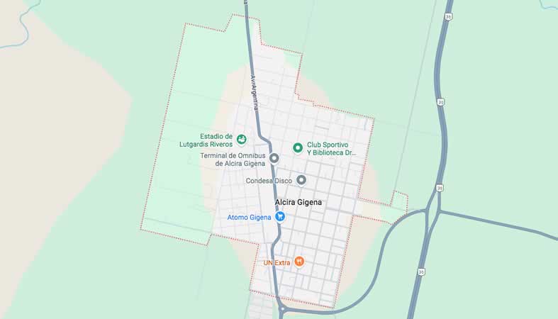 Mapa y Calles de Alcira Gigena, Córdoba