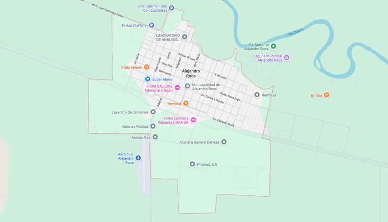 Guía completa del mapa y calles de Alejandro Roca, Córdoba, con puntos de interés, direcciones y datos útiles para visitar esta localidad.