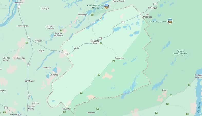 Mapa y Calles del departamento Concepción, Corrientes