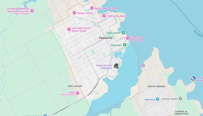 Mapa y Calles de Federación, Provincia de Entre Ríos