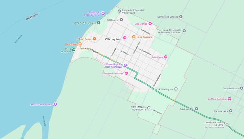 Mapa y Calles de Villa Urquiza, provincia de Entre Ríos