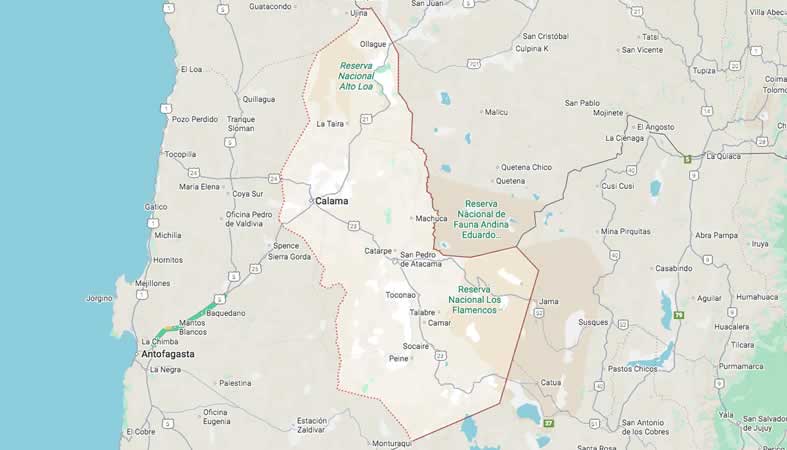 Mapa de la Provincia de El Loa: