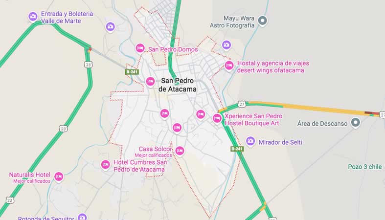 Mapa y Calles de la Comuna San Pedro de Atacama, provincia El Loa