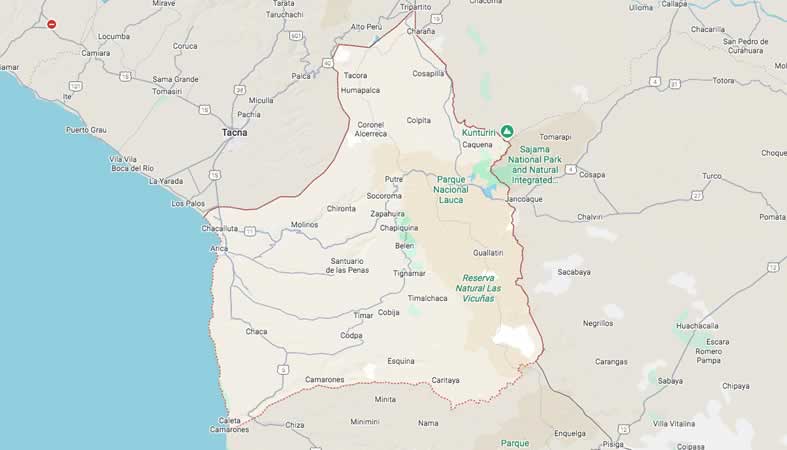 Mapa y Calles de la región Arica y Parinacota, Chile