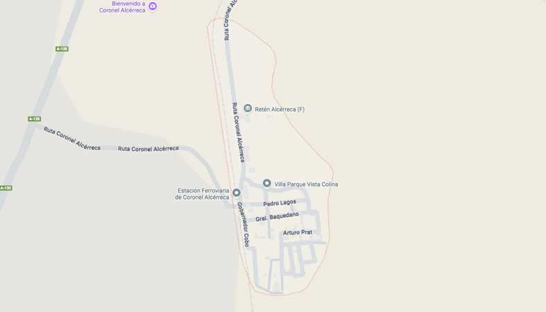 Mapa y Calles del distrito Coronel Alcérreca, comuna General Lagos