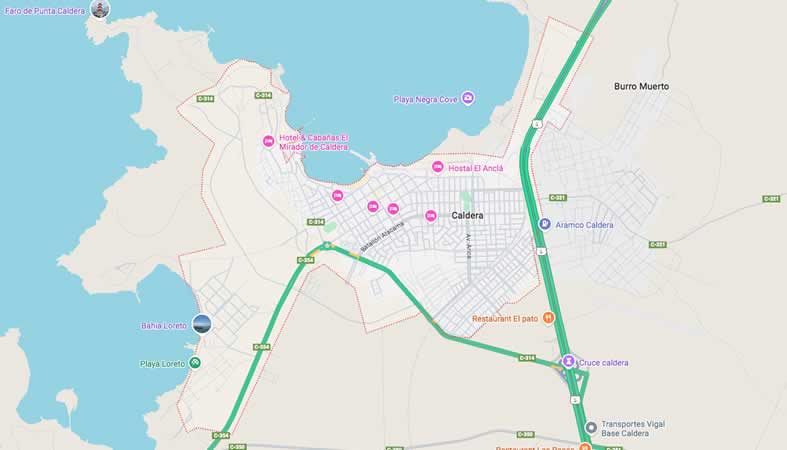 Mapa y Calles de la Comuna Caldera, provincia Copiapó