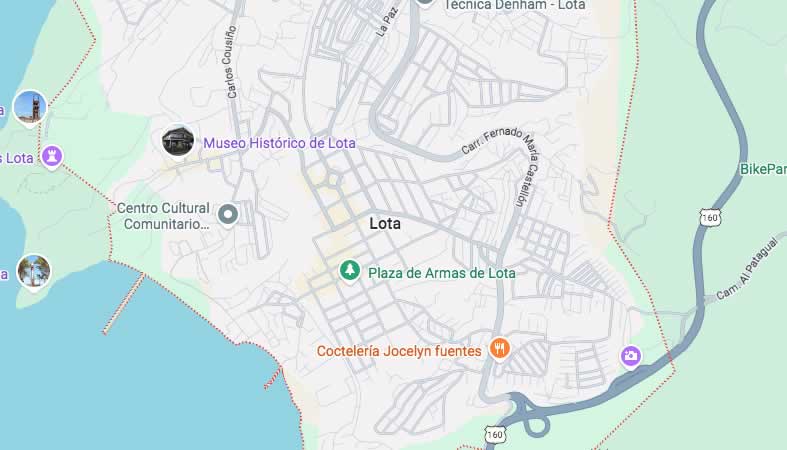 Mapa y Calles de la Comuna Lota, provincia Concepción
