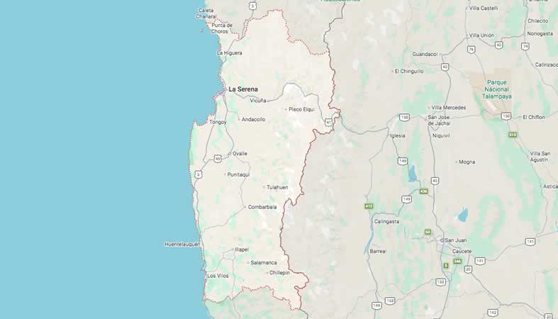 Mapa y Calles de la Región de Coquimbo, Chile