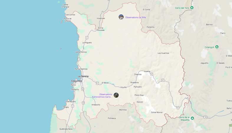 Mapa y Calles de la provincia Elqui, región de Coquimbo