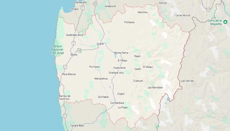 Mapa y Calles de la provincia Limarí, región de Coquimbo