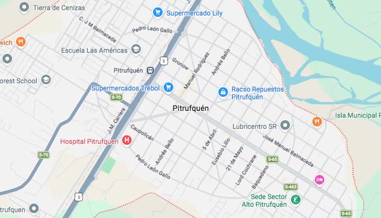 Mapa y Calles de la Comuna Pitrufquén, provincia Cautín