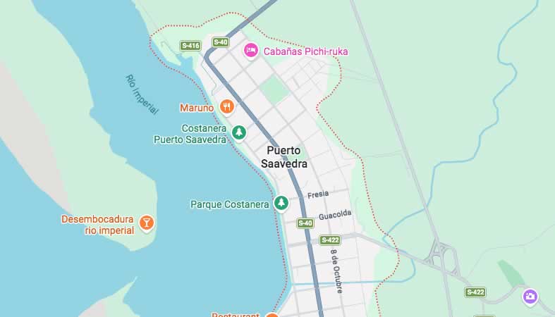 La comuna de Saavedra, ubicada en la provincia de Cautín, Región de La Araucanía, Chile, se extiende por un área de 400.8 km² y tiene como su principal centro urbano a Puerto Saavedra. Este territorio, con una rica historia y un profundo arraigo mapuche, se caracteriza por su singular geografía costera y fluvial, enmarcada por la desembocadura del río Imperial. Originalmente conocido como "Konün Traytrayko leufu", que en mapudungun significa "el río que corre cantando", el sector de Puerto Saavedra ha visto evolucionar su entramado urbano a lo largo de los años. Entre las aproximadamente 50 calles registradas en la comuna, se encuentran nombres que evocan la historia y la cultura local, como Araucanos, Caupolicán, Lautaro, o reflejan fechas importantes como 18 de Septiembre y 21 de Mayo. Otras calles llevan nombres de figuras destacadas como Arturo Prat, Augusto Winter y Víctor Jara. El trazado urbano en Puerto Saavedra se ve influenciado por su ubicación estratégica, con calles como Costanera y Playa Maule que abrazan el litoral, mientras que arterias como Avenida Ejército y Avenida San Sebastián son puntos clave en la localidad. La comuna también cuenta con diversos pasajes que se internan en sus barrios, como Pasaje Bahía, Pasaje Las Araucanias y Pasaje Los Alerces. La planificación de sus calles y el desarrollo urbanístico han sido procesos dinámicos, adaptándose a la topografía del lugar y a los eventos históricos que han marcado a la comunidad, incluyendo el devastador maremoto de 1960 que reconfiguró parte de su infraestructura. La red vial conecta la zona urbana con puntos de interés como la Laguna Imperial y la Boca Budi, integrando los paisajes de río, mar y lago que definen a Saavedra. La pavimentación de rutas clave, como la S-40 "Carahue-Pto. Saavedra", es un esfuerzo continuo para mejorar la conectividad y el desarrollo de la región.