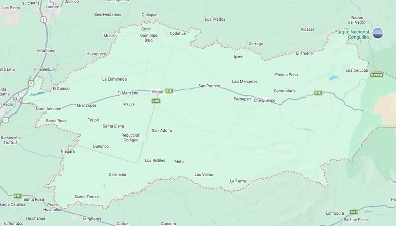 Mapa y Calles de la Comuna Vilcún, provincia Cautín