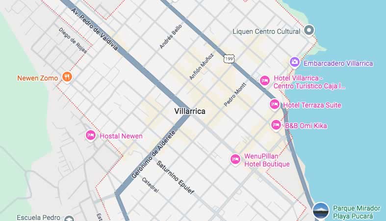 La comuna de Villarrica, en la provincia de Cautín, Región de La Araucanía, se extiende sobre un paisaje dominado por el imponente volcán del mismo nombre y las aguas del lago Villarrica. Su trazado urbano, históricamente influenciado por su vocación turística y lacustre, presenta una estructura vial que busca armonizar el desarrollo con la preservación del entorno natural. La ciudad se articula alrededor de vías principales como la Ruta CH-199, que la conecta con Pucón, y la Ruta S-95-T hacia Lican Ray y Freire, elementos cruciales para la conectividad regional. Calles emblemáticas como General Urrutia, Pedro de Valdivia, Aviador Acevedo, Vicente Reyes y Camilo Henríquez dan forma a su núcleo urbano, donde confluyen la vida comercial y residencial.