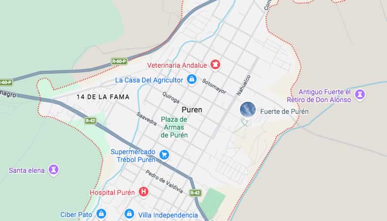 Mapa y Calles de la Comuna Purén, provincia Malleco