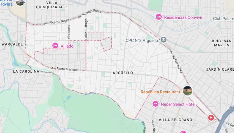 Mapa y Calles del Barrio Argüello, Córdoba