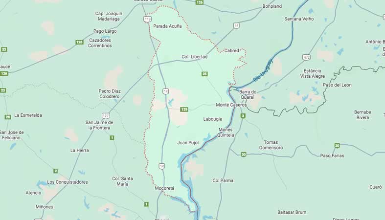 Mapa y Calles del departamento Monte Caseros, Corrientes