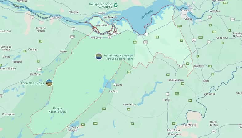 El mapa de Ituzaingó muestra un territorio con una geografía variada, con llanuras y esteros que se extienden a lo largo de sus 8.613 km². La ruta provincial 40 es una de las principales vías de acceso al departamento y conecta a Ituzaingó con otras localidades importantes de la provincia.