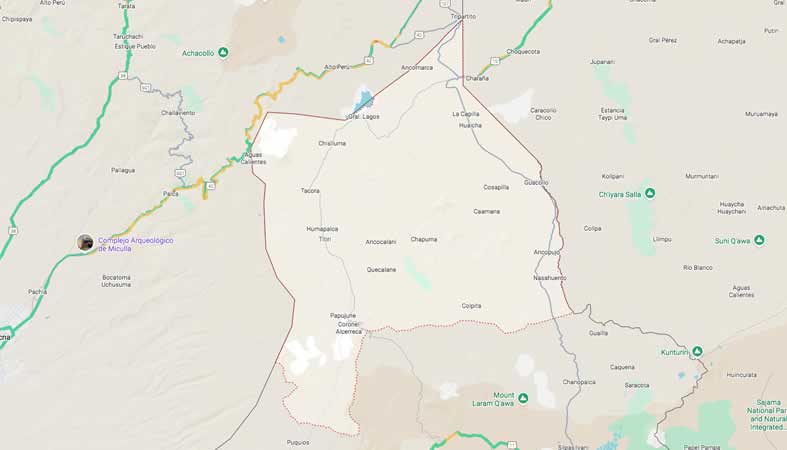 Mapa y Calles de la Comuna General Lagos, provincia Parinacota
