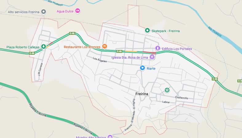 Mapa y Calles de la Comuna Freirina, provincia Huasco