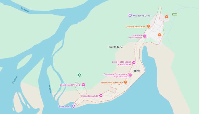 Mapa y Calles de la Comuna Tortel, provincia Capitán Prat