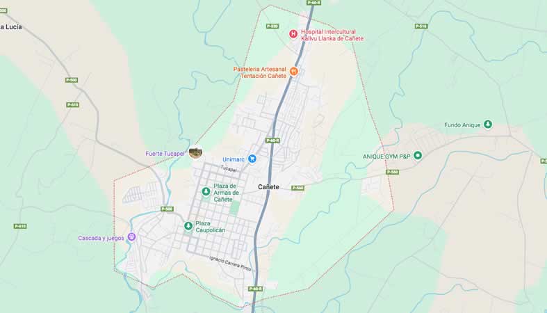 Mapa y Calles de la Comuna Cañete, provincia Arauco