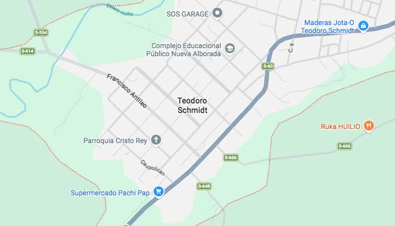 Mapa y Calles de la Comuna Teodoro Schmidt, provincia Cautín