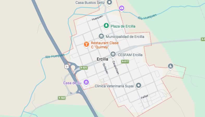 Mapa y Calles de la Comuna Ercilla, provincia Malleco