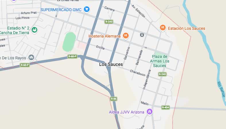Mapa y Calles de la Comuna Los Sauces, provincia Malleco
